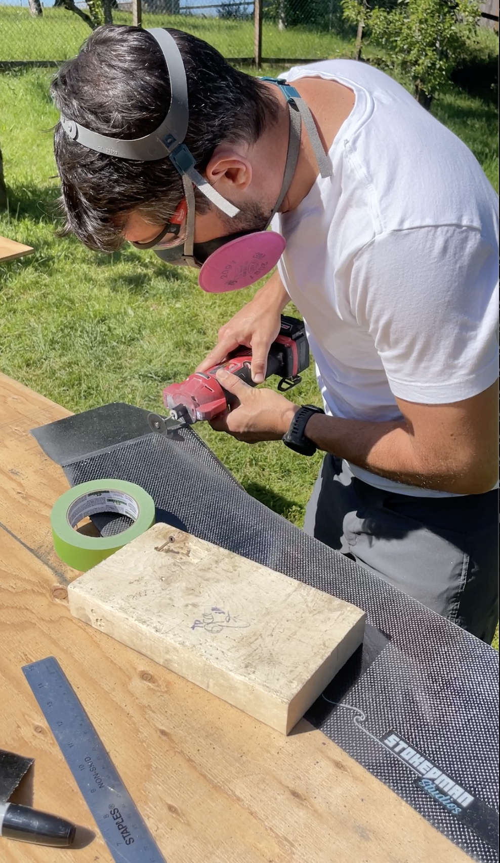 To achieve the exact surface and angle needed for the fins, we built a custom rig using glass panels and 3D printed hardware. This provided a perfectly smooth base and precise geometry for laying the carbon fibre sheets. Every detail—from the layup alignment to the finishing surface—was carefully controlled to optimise performance.