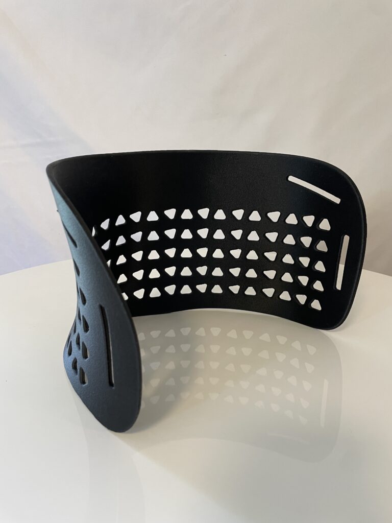 We started by 3D scanning her torso to capture every curve and contour. This data allowed us to model a guard that was not only protective but also lightweight and comfortable for movement. Once the design was finalised, we 3D printed the piece and refined the edges and surfaces to ensure strength and safety.