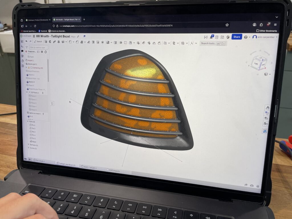 We 3D scanned the existing tail lights to capture every contour with exact precision. From there, the original bezel was removed, laser scanned and digitally reimagined in CAD, where Eric modelled a replacement bezel with integrated off-road guards.